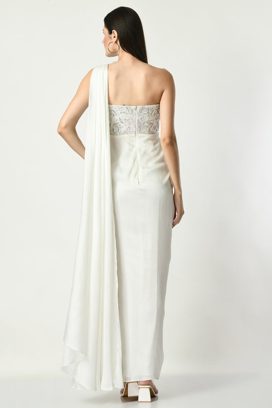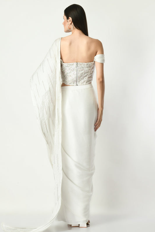 Ivory Georgette Saree with Embroidered Cape - Designer Wedding Wear
