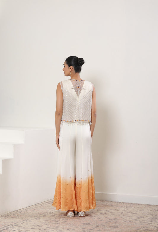 Ivory with Orange Satin Organza Jumpsuit with cape – Occasional Wear