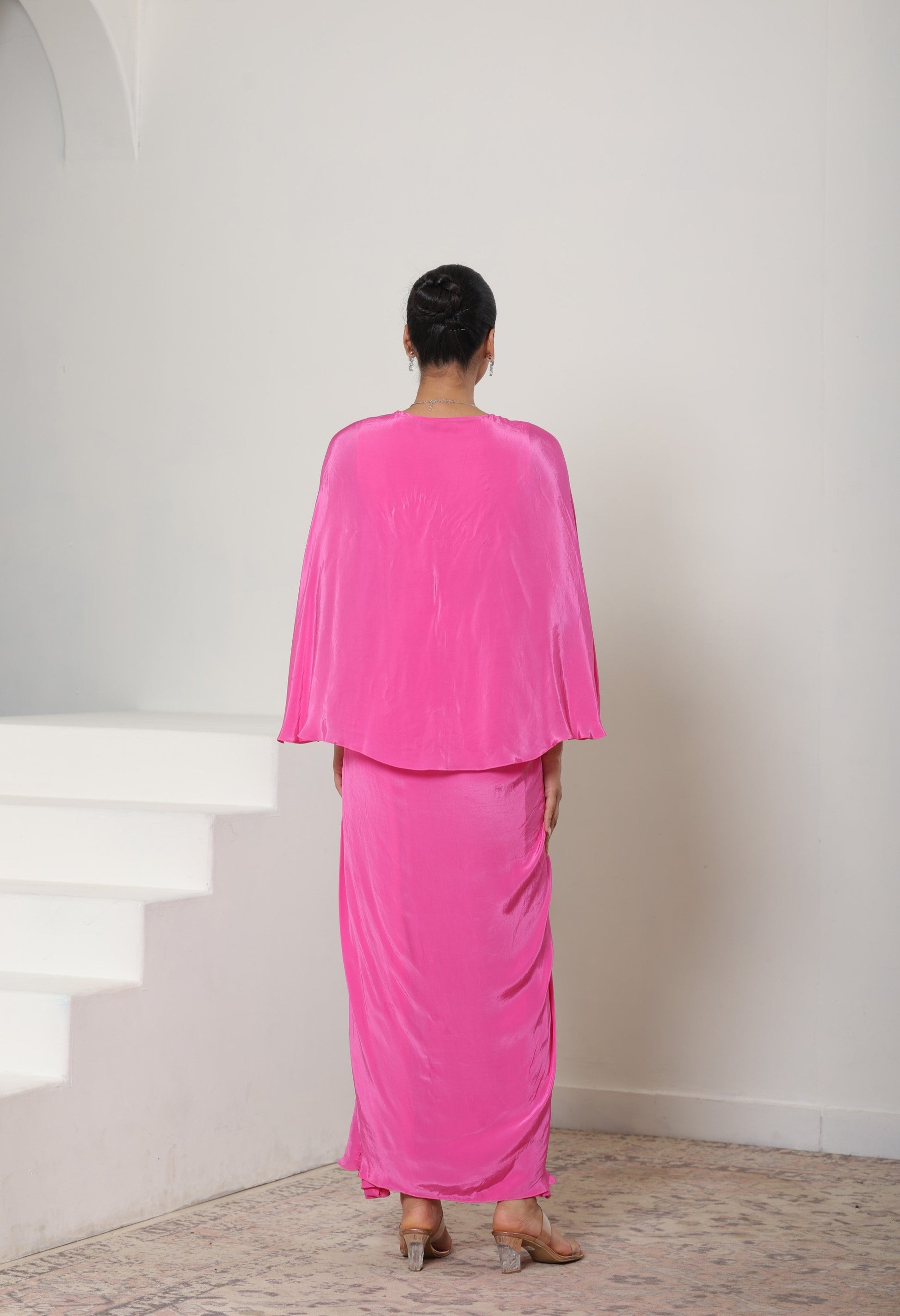 Pink Crepe V- Neck Kaftan – Elegant Cocktail Wear