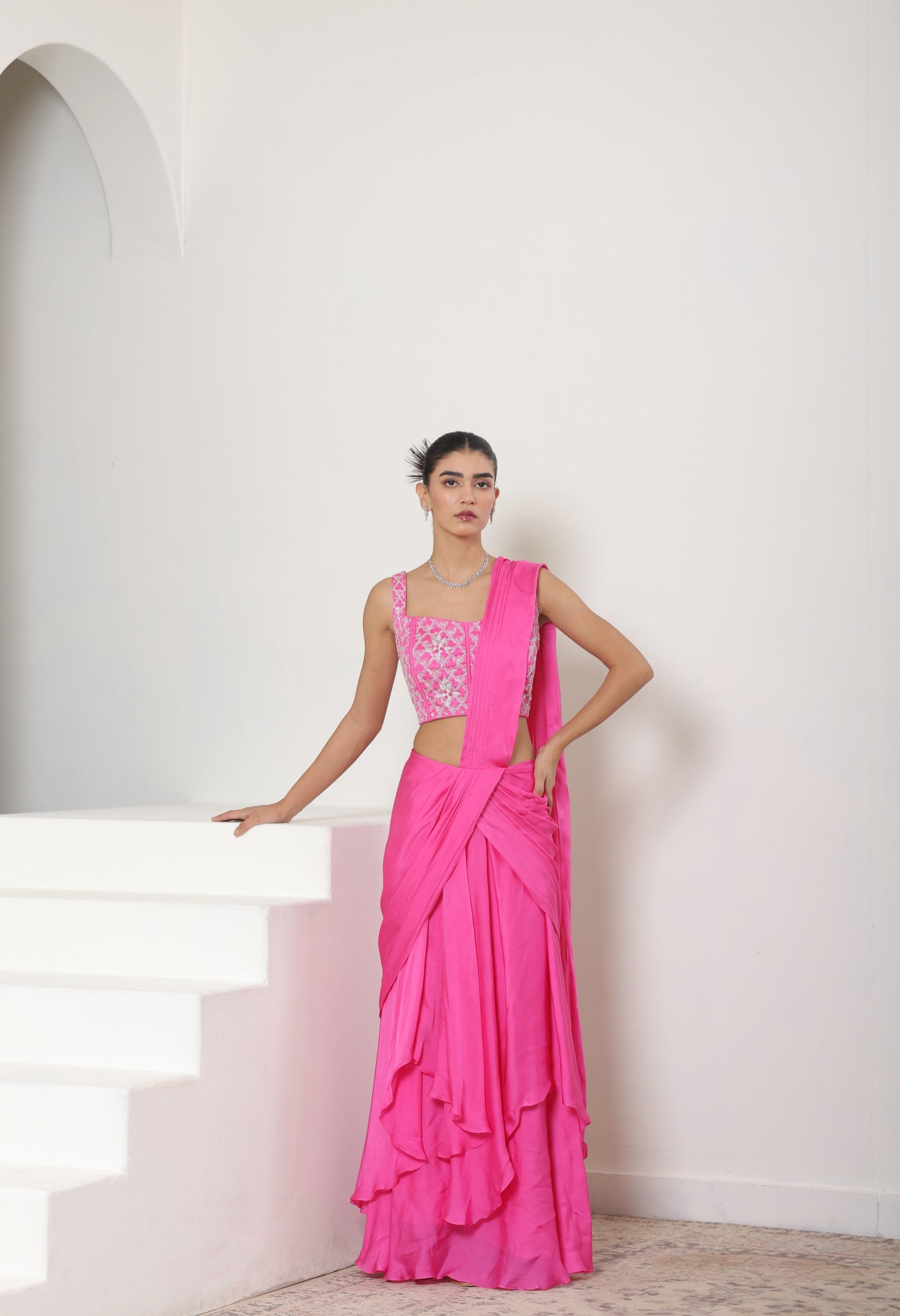 Pink Satin Organza Saree - Premium Sangeet Wear